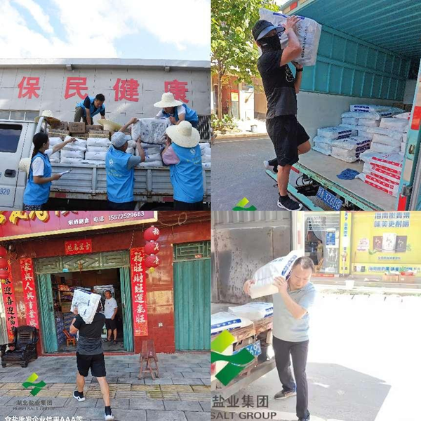 室外热浪滚滚,盐库内温度更是高达40多度,鄂东分公司干部职工不惧酷暑,坚守岗位,奋战在工作一线。从配送车到仓库的转运,再从仓库到配送点的装车,一箱箱、一包包沉重的食盐在职工的肩膀上、手上传递,鄂东“盐业人”用辛勤的汗水展现了自己的责任和担当。同时,他们还积极深入社区、商超向市民普及科学用盐知识,通过讲好“盐业”故事,传递“云鹤”品牌价值。