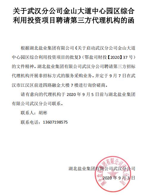 关于武汉分公司金山大道中心园区综合利用投资项目聘请第三方招标代理机构的函.pdf