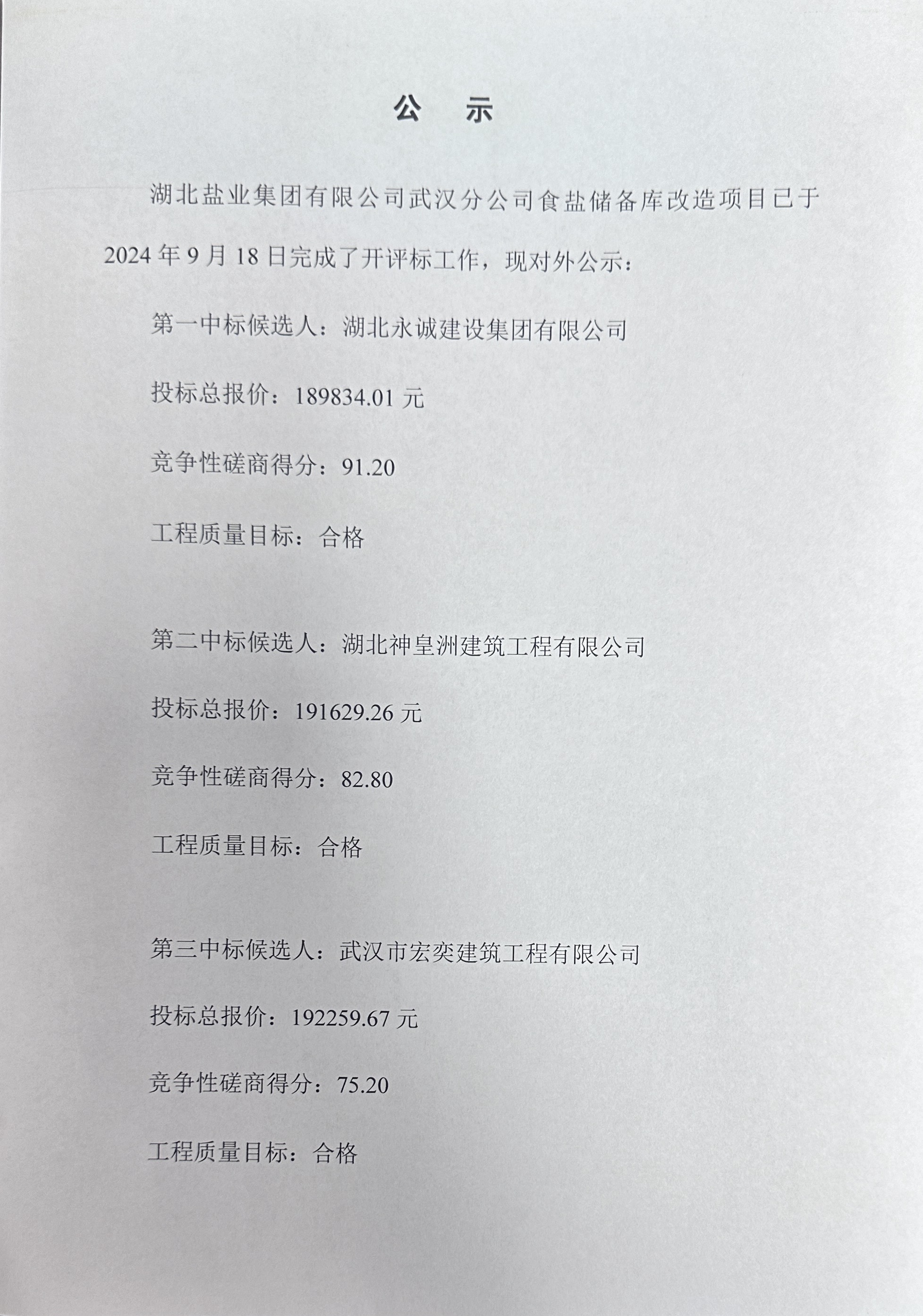 公示(bv伟德官网武汉分公司食盐储备库改造项目 招标结果)