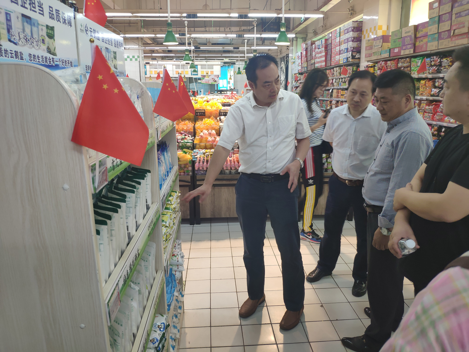 每到一地董事长都与基层公司职工亲切座谈,详细询问基层公司的经营情况,了解当前面临的主要问题和困难。董事长还深入到市场一线调研,到商超卖场现场查看升级版500克碘盐的上柜陈列及价格执行情况;到集贸市场亲自充当“促销员”,与经营户面对面交流,向他们推荐升级版500克碘盐,听取他们的意见和建议。