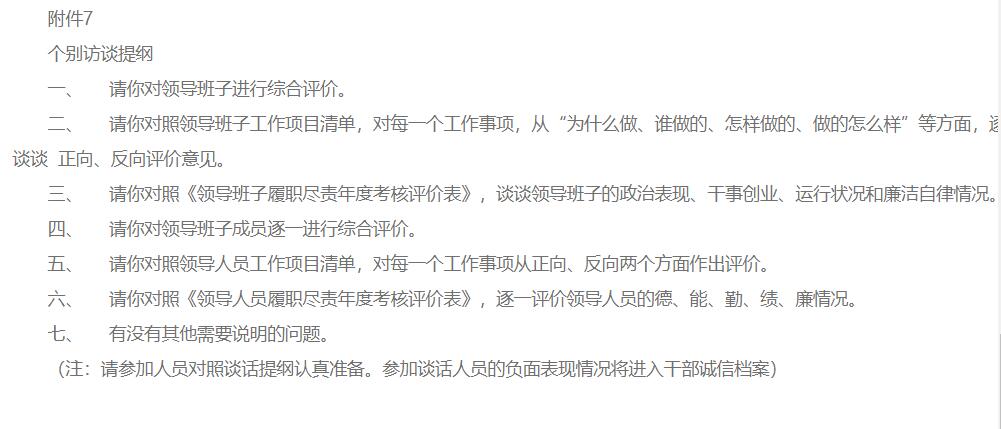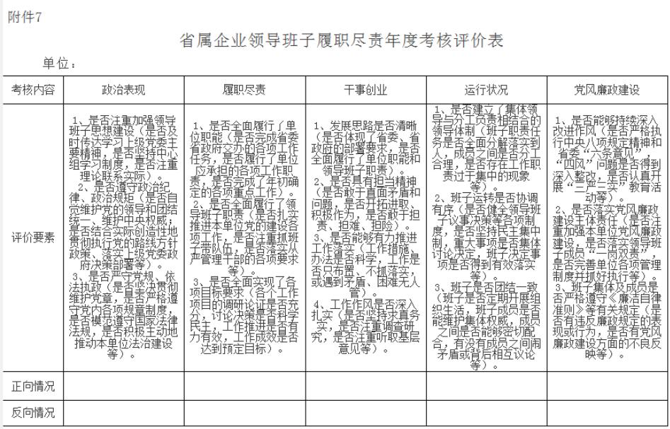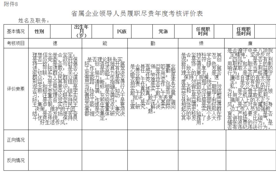 省属企业领导班子履职尽责年度考核评价表及个别访谈提纲