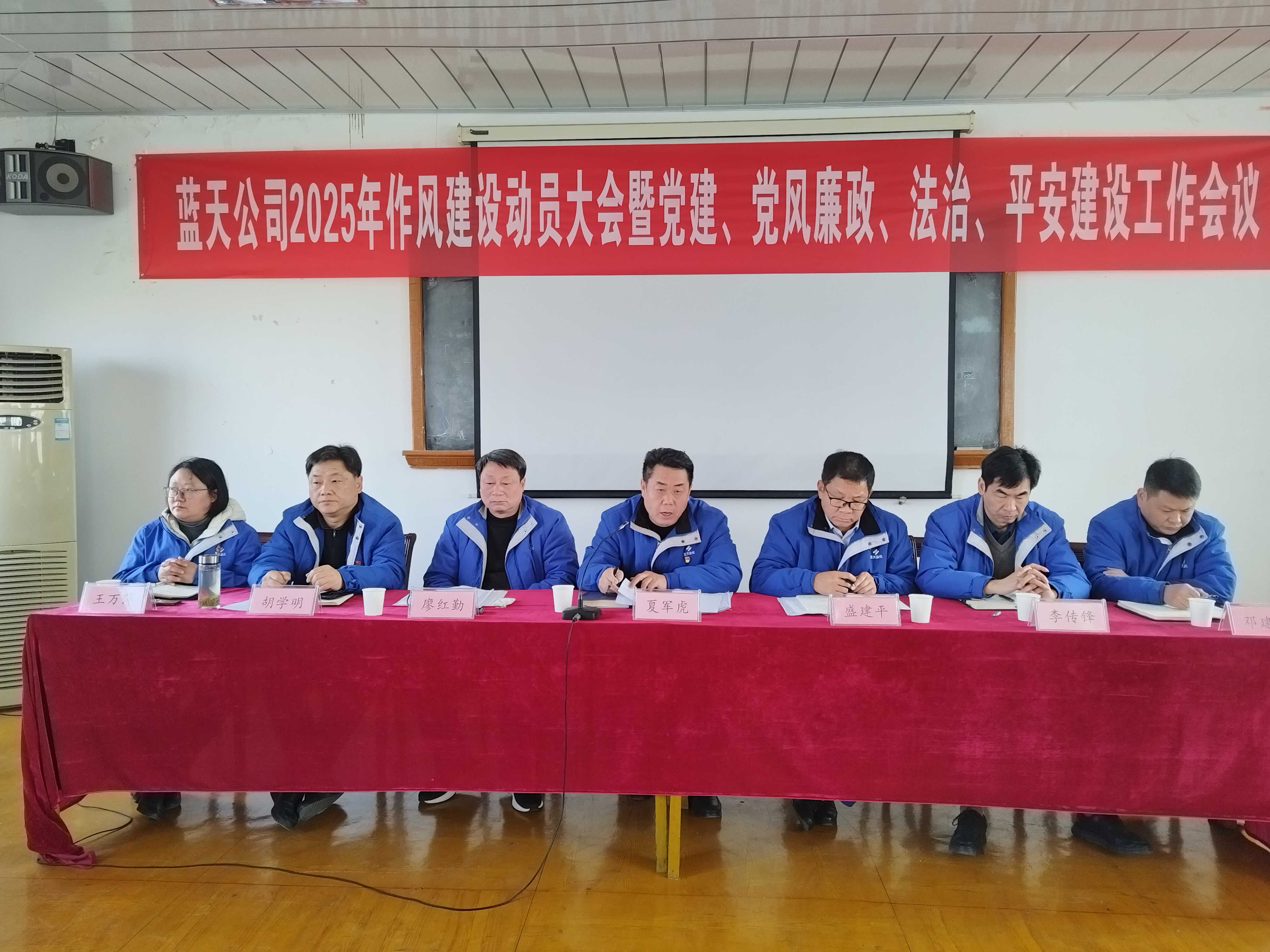 人勤春来早,奋进正当时。2月15日,湖北蓝天盐化有限公司在公司招待所四楼职教室召开2025年作风建设动员大会暨党建、党风廉政、法治、平安建设工作会议,全面总结2024年生产经营工作及党建和党风廉政建设工作,分析当前形势,部署2025年重点工作,动员全体干部职工进一步转变工作作风,凝聚思想共识,聚焦主责主业,勇挑重任、砥砺前行奋力谱写企业高质量发展的新篇章。党委书记、董事长夏军虎出席会议并作动员讲话,党委委员、副总经理廖红勤主持会议。