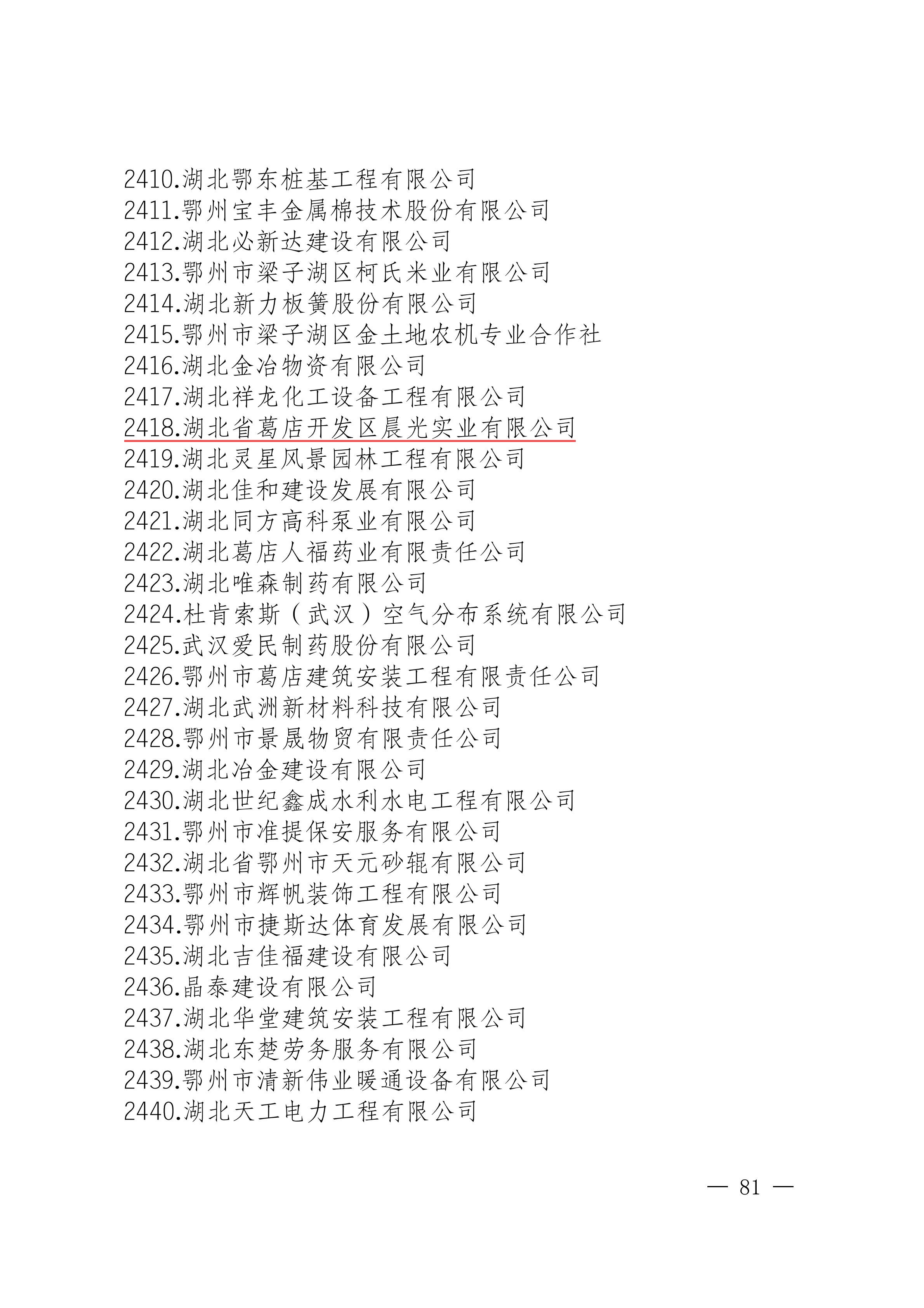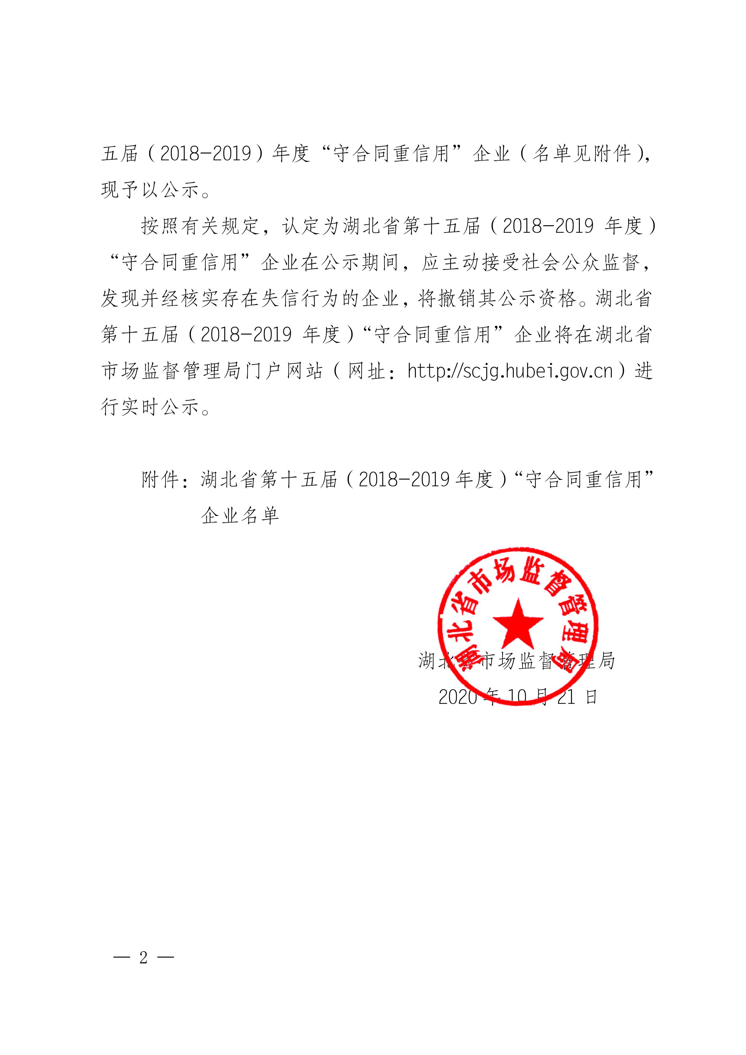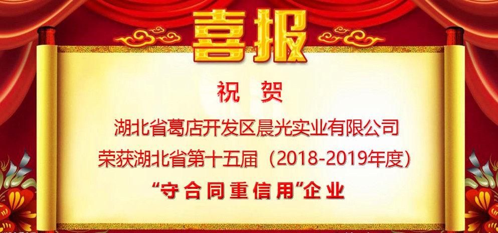 湖北省葛店开发区晨光实业有限公司再获肯定,荣获湖北省第十五届“守合同重信用”企业。