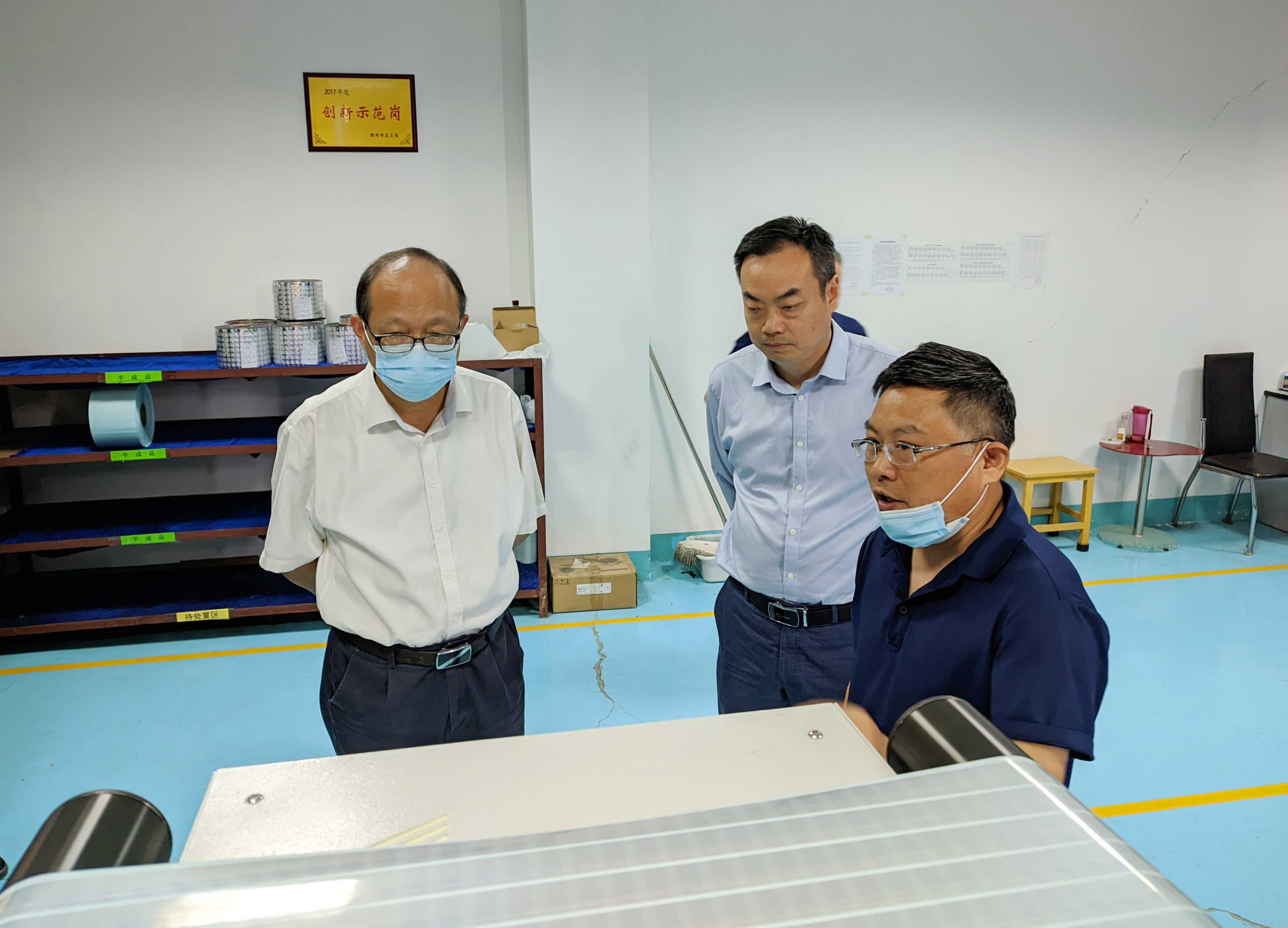 陈华志、刘江海一行深入数字化可追溯二维码防伪产品生产现场,和基层干部职工进行了面对面的交流,了解生产工艺流程、追溯平台运行模式、产品运转流向和新产品研发过程,并提出指导意见。
